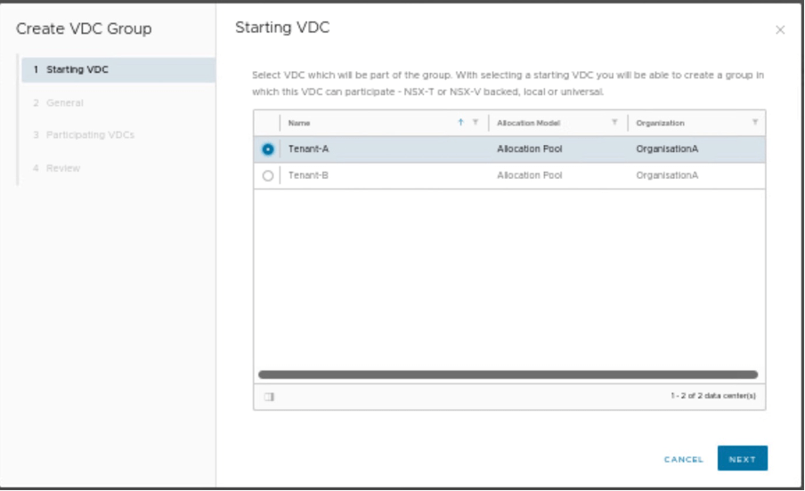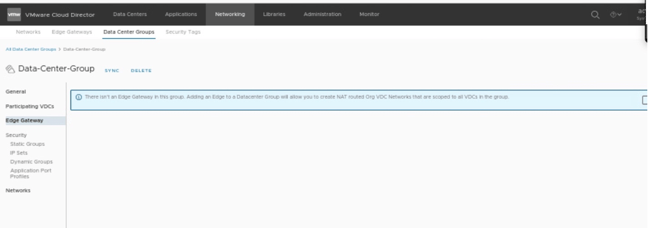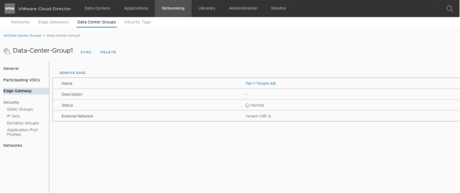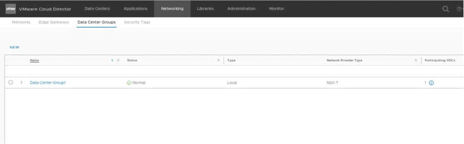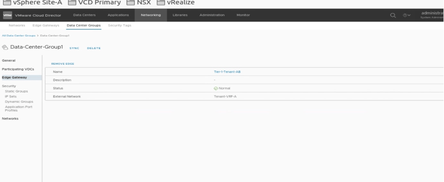 In this section, we will create one data center group, which will have starting VDC (Tenant-A) and participating VDC (Tenant-B).
