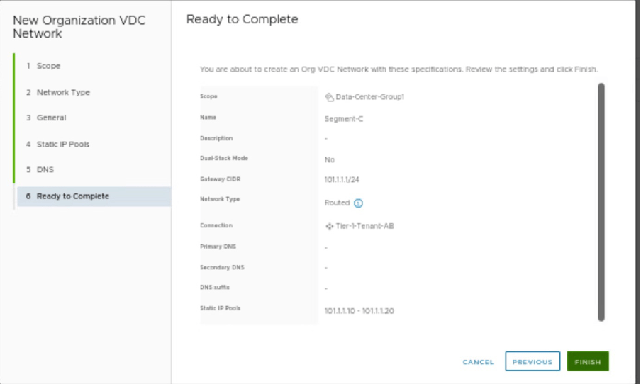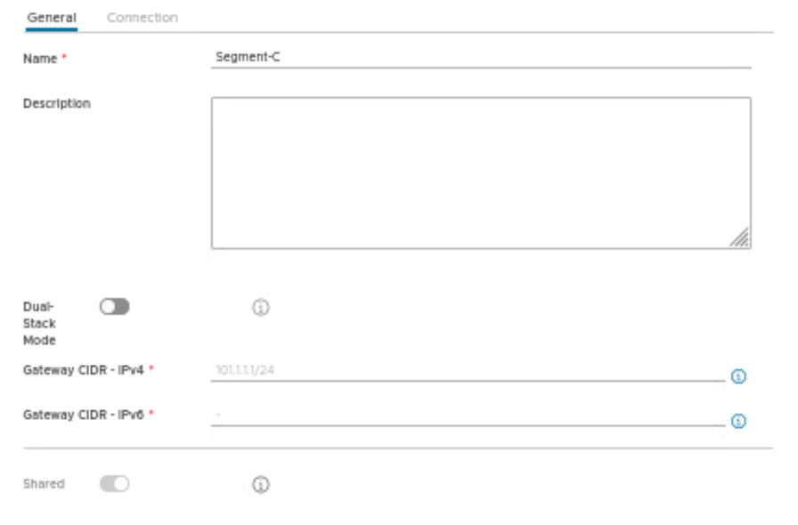 We will create a separate segment Segment-C and connect it previously created stretch Tier-1 gateway.