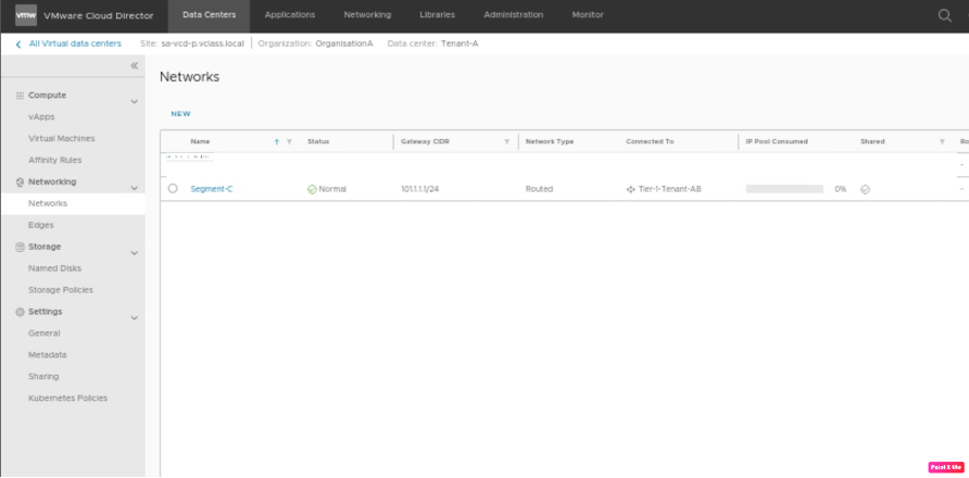 In the third part, (https://vxlearners.com/2023/07/16/nsx-t-integration-with-vcd-part-3/) created two tenants belonging to the same organization along with that separate Tier-1 gateways. Separate logical segments for both tenants have been connected to the corresponding Tier-1 gateways. Successfully tested the network connectivity between Provider VDC belonging to the same organization.
