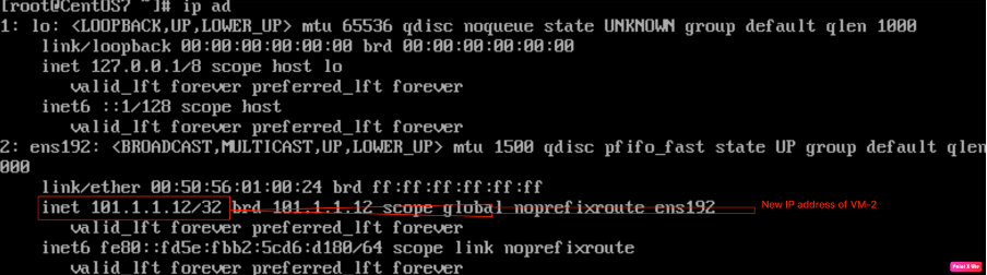 Checking the IP address of VM-2 via CLI.