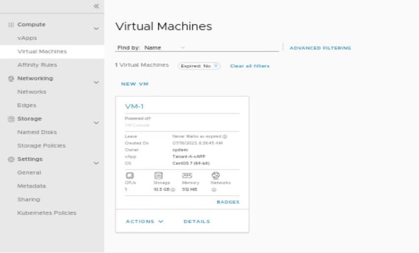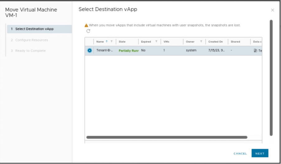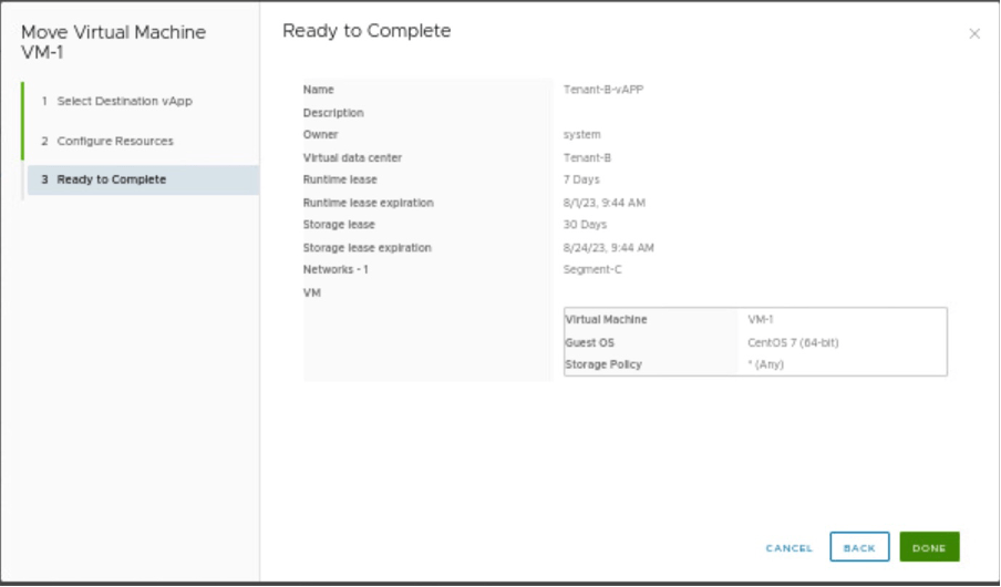In this scenario, we have power-off the VM-1 and move it to Tenant-A-vAPP.