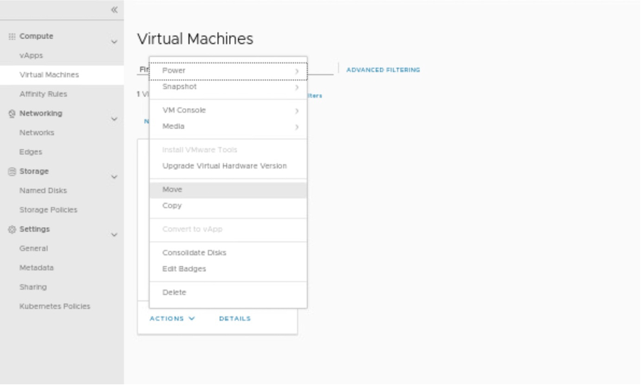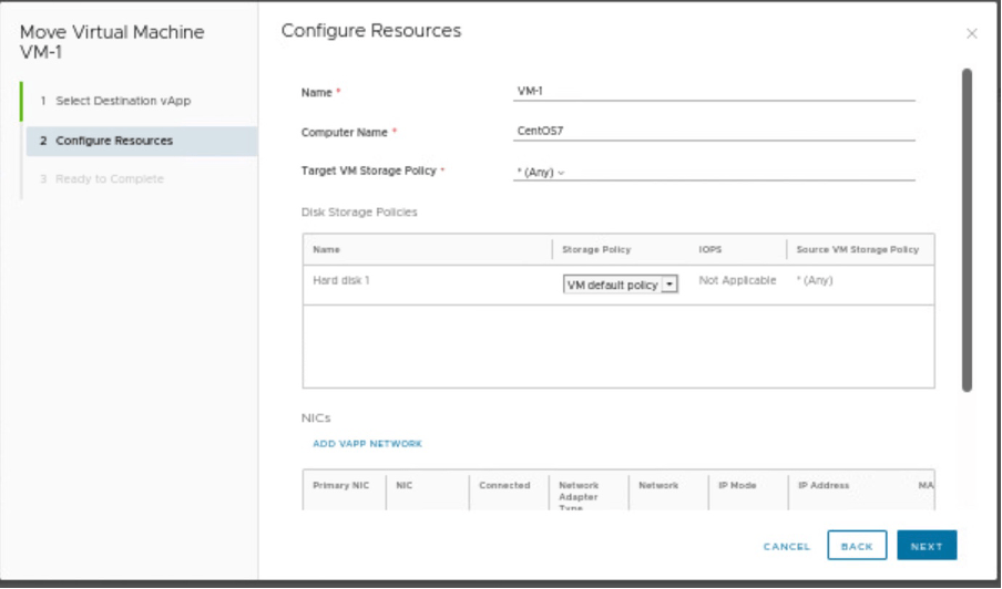 In this step, moving VM-1 to another vAPP which is in another DC.