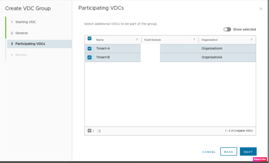 In this step, we need to provide the participating VDC, which is Tenant-B. This a lab scenario, therefore Fault domain for both Tenant-A and Tenant-B seems to be the same, however, in the production environment provide VDC-1 is one fault domain whereas VDC-2 is another fault domain.