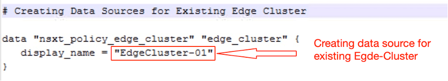Creating data source for existing Tier-0 gateway “Terraform-Tier-0”.