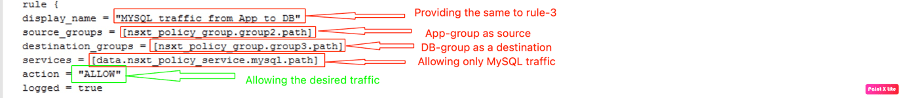 In rule-3, we will allow only “MySQL” traffic from “App-group” to “DB-group”.