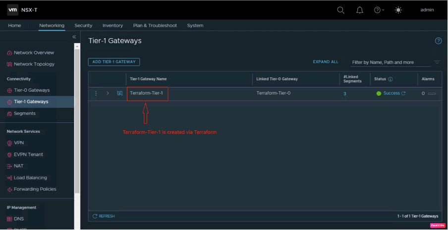 In this part of the blog, we will verify in NSX-T whether logical constructs are created by Terraform or not. Let’s start with the Terraform-Tier-1 gateway, created by Terraform.