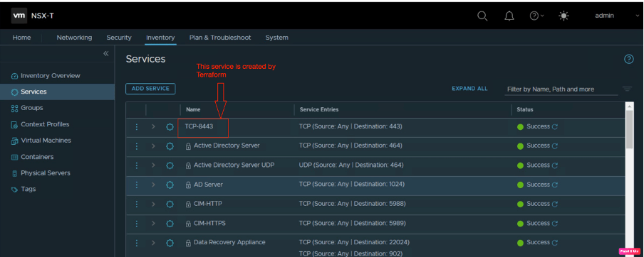We have also created one TCP-8443 service, navigate to inventory, and go to Services.