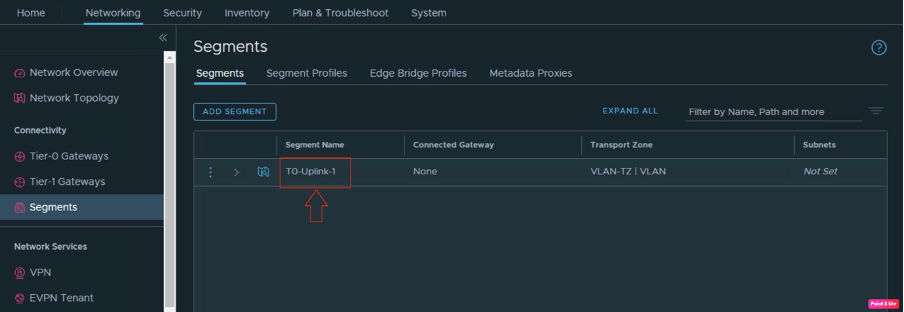 It’s time to verify the logical segments, whether these are created or not. Navigate to Networking and then go to Segments.