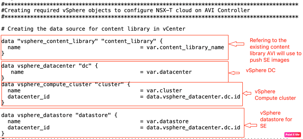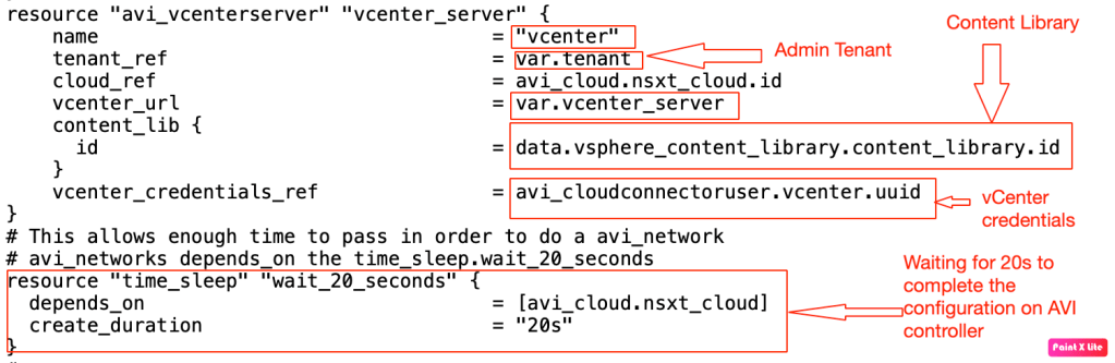 –> Variable.tf:- This file is updated to include variable components used by vSphere, and AVI controller.
