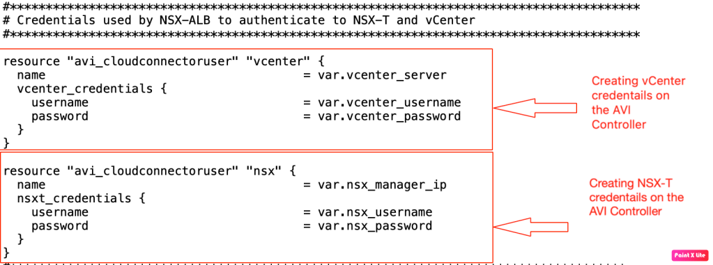 NSX-T cloud will also consume vCenter, and NSX-T credentials to deploy SE’s and virtual services.