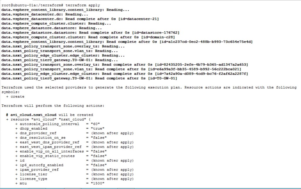 Now we will apply the terraform script so that it will configure all necessary logical constructs on the AVI Controller.