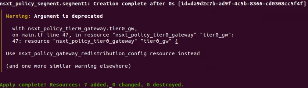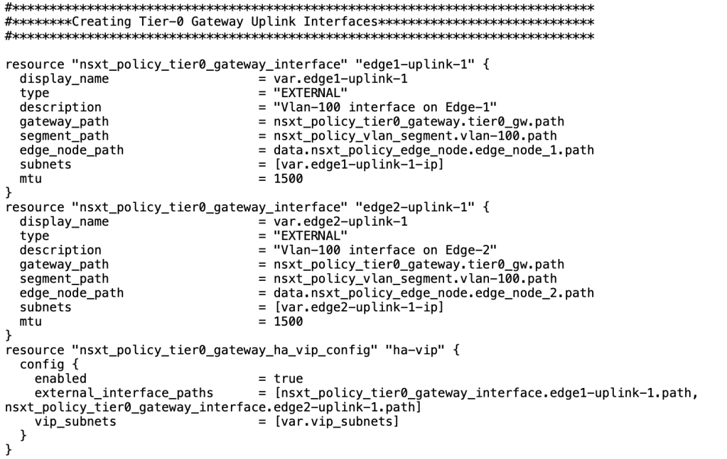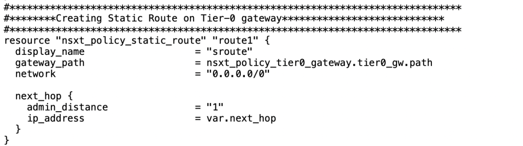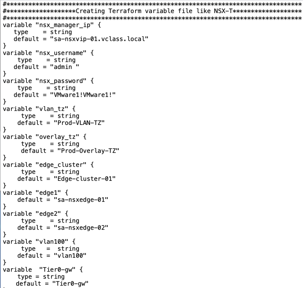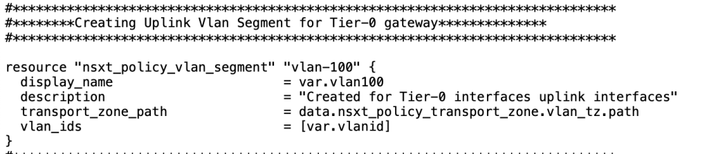 In case you want to create Tier-1 gateways and logical segment, please refer my first blog on Terraform (https://vxlearners.com/2023/09/08/infrastructure-as-a-code-automating-nsx-t-via-terraform/).