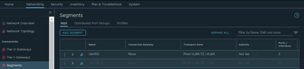 In the next step, we will configure one vlan segment which will be used to configure uplink interfaces on Tier-0 gw.
