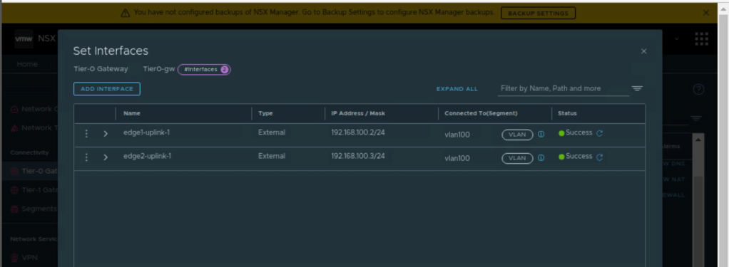 Now, lets validate the edge uplink interfaces which are provisioned on Tier-0 gateway.