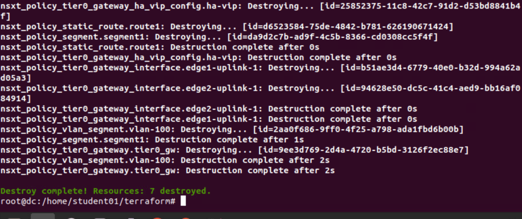 In the below screenshot, we are running terraform destroy to delete all NSX-T configuration configured by Terraform.