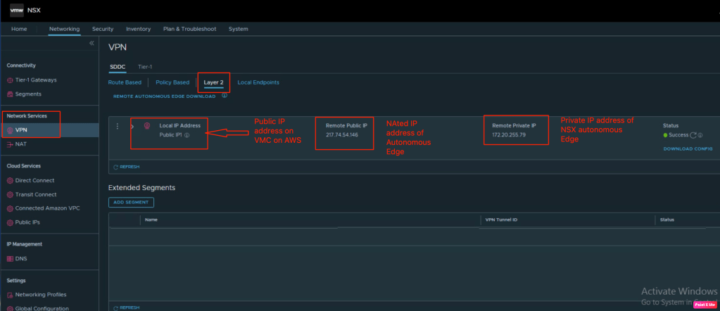 We have completed all necessary steps required configure L2VPN between legacy datacenter and VMC on AWS.
