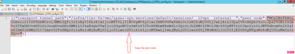 In the next step, we will open the configuration downloaded in the pervious step. From this file, we will copy the peer code which is needed on the NSX Autonomous edge.