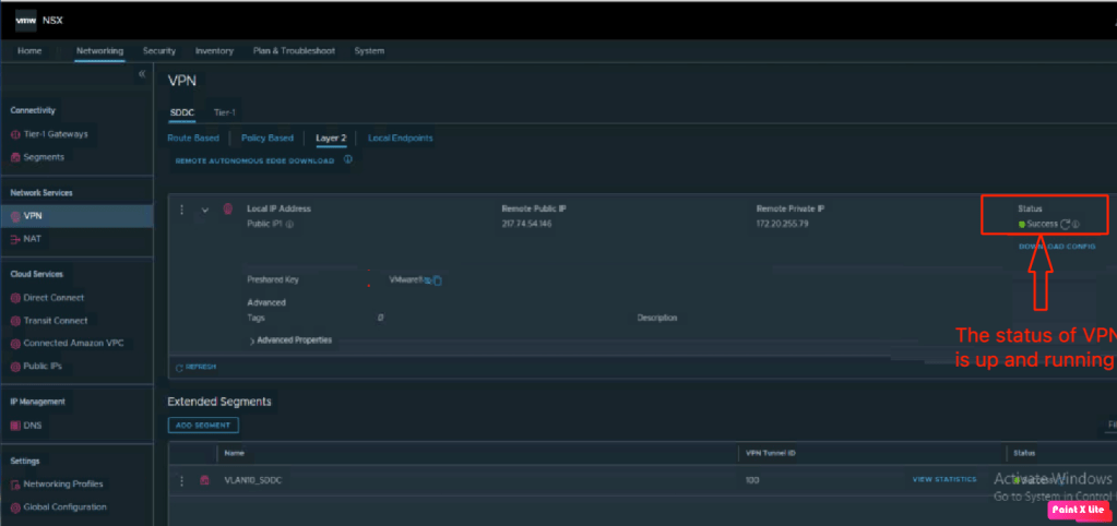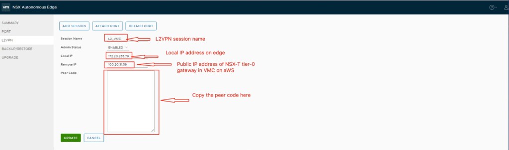 In this step, we will validate the status of L2VPN on both VMC on AWS and NSX autonomous edge.